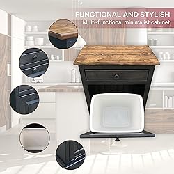 MULTIFUNCTIONAL: The pull-out trash can cabinet is used to hide your trash and to keep your kitchen, bedroom, and bathroom clean and neat. Our trash can for the bedroom also includes a drawer for added storage. QUALITY CRAFTSMANSHIP: This cabinet trash can is made of solid pine wood available in a variety of finishes. Our trash bin is strong enough to use as a shelf while the surface is easy to clean and looks great with any home decor. UNIQUE DECOR: Our trash can cabinet pull-out is a decorative room trash can that helps beautify your living space. Our hideaway bedroom garbage can looks like a cabinet, adding style to your home and impressing your guests. DIMENSIONS: Our cabinet trash can pull out kit is 21.5" wide x 12.75" deep x 34" high. Our cabinet garbage can pull out weighs 45 pounds and fits a 36 Qt. 14.5" x 11" x 18" fully removable waste basket. CUSTOMER SATISFACTION: The Lancaster County craftsman who made your cabinets may not have their name on it, but Amish artisans make home & kitchen products that will stand the test of time. We provide furniture for thousands of homes across America with Amish craftsmanship's timeless value.