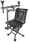 DIMENSIONS: Weighs approximately 22 pounds with a maximum height of 41 inches and weight limit of 300lbs VERSATILE: With a dual frame, upper frame balance point adjustment, wide format polymer feet, a tension knob for tilting the frame up/down and independent height adjustable front and rear supports, this rest is solid for every shot EASE OF USE: A tension knob is conveniently placed to allow for quick and easy adjustment of the upper frame and the chair can swivel 360 degrees. Rest is lightweight, durable and quickly folds for easy transport with the shoulder backpack straps DURABLE: This rest features over molded, non-marring rear stock and front fore end support that will securely hold your gun without damaging any point of contact BE PREPARED: Features a dual frame construction and upper frame length adjustment for use with any size rifle including detachable magazine rifles and crossbows making this rest great for ground blinds, predator/turkey hunting and long-range shooting GUARANTEED: This product is covered by a limited 1-year warranty provided by BOG. For all your questions please contact BOG's customer service
