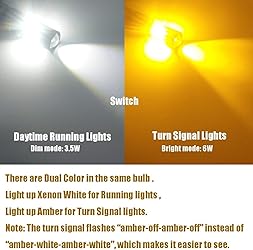 - Features Dual Function: Light up Xenon White for parking lights or daytime running lights, Light up Amber for turn signal lights. High Brightness LED: 16SMD 3030 chipset. Working Voltage: 9-24V (fit 12V, 24V vehicles). Output Wattage: 3.5W/bulb (White), 6W(Amber). Color: White/Amber. Service Life: Up to 30,000 Hours. NOTICE: For turn signal lights, since LED bulbs have lower wattage comparing with the stock bulbs, you might need to add 50W 6-Ohm load resistors or flash relay to prevent the LED bulbs from hyper flashing, malfunction or trigger warning message on dashboard. IMPORTANT NOTICE! Please check the measurement of our item and the socket type of your vehicle before placing an order. iBrightstar is a registered brand with Amazon. Please contact us if there is any questions or other requests!