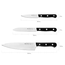 - Fabricated from high-quality stainless steel, the single-piece, precision-stamped blades boast excellent cutting precision.The professional, satin-polished, fine-edge blades are finely honed for long-lasting precision. The knives' full tang construction and ergonomic handles give you the balance and strength you need to confidently slice through tough cuts with ease. Easy to use, these dishwasher-safe knives are also easy to maintain.Henckels makes essential kitchen knives that every home chef needs. Each knife offers high quality at an exceptional value. Created in 1895 by Zwilling J.A. Henckels, this value-driven brand guarantees the same durability, design and ease of use for which the global company is known. Equip your kitchen with expertise with Henckels.