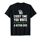 Python programmers know the pain of having to deal with code that uses module star imports, especially when starting to work on an existing code base that's new to them. They clutter your namespace, impede debugging and cause severe headaches. A funny and sarcastic design that warns co-workers and fellow Python coders of the consequences of star imports in your code. It shows statement in white & green and a sad kitten on top. Great for work, events and conferences with Python Geeks and Nerds. Lightweight, Classic fit, Double-needle sleeve and bottom hem