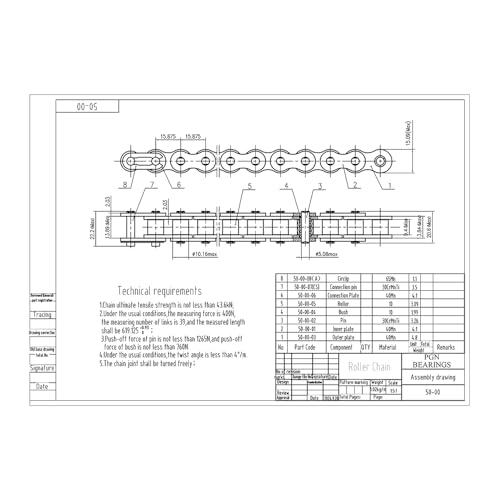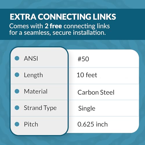 PGN #50 Roller Chain - 10 Feet + 2 Free Connecting Links - Carbon Steel Chain - 191 Links