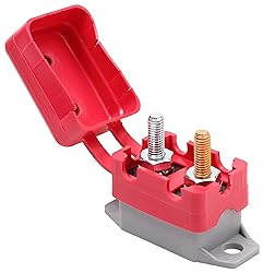 #10-32 Studs Where Terminals can be Stacked up to 1/2" Never Worry about Blown Fuses with Thermal Automatic Reset Feature Flexible Red Vinyl Cover Eliminates Electrical Shorts and Prevents Corrosion Durable Plastic Rustproof Housing Can be Mounted in Any Orientation Meets SAE J553 Specification for Circuit Breaker Performance Ignition Protected to SAE J1171, and Sealed per Standard IP63.