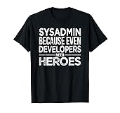 - Sysadmin Because even developers need Heroes is a perfect gift t shirt for your Sysadmin colleagues and friends at work for their birthday, wedding anniversary, retirement gift or a party present. Looking for a funny Systems admin shirt for your husband, wife, mom or dad then you will definitely like this Sysadmin tee shirt.