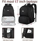 Large Capacity & Organized: Size: 19*14*9 inch. Capacity: 40 L. The lunch cooler backpack keeps daily and travel essentials well organised. 1 main zipper compartment, 1 lunch box compartment, 1 laptop sleeve compartment for 14-17 inch laptop, 2 small front pockets for keys & mouse, 2 side mesh pockets for water bottle & umbrella, and 1 anti-theft pocket on the back for mobile phone & wallet (Please check the size of your laptop before purchasing) TSA Function & Checkpoint Friendly: Mens backpack for work with TSA design is great for college, travel and commuting, it allows easy access by TSA agents to their contents for inspection. At checkpoint, the 17 inch laptop backpack can be opened 90-180 degree freely, which helps you pass the airport security quickly and keep items tidy. The thick padded laptop sleeve compartment is good for protect your devices from scratches and falls. Size of laptop compartment: 15 x 11 x 1.8 inch Insulated & Leakproof Cooler Design: The lunch box backpack with a insulated cooler compartment, keep foods cool or warm for 2-4 hours, easy to clean and storage when not use. Let you enjoy delicious food at any time, perfect for college, work, office, picnic, hiking, camping, fishing, cycling, other outdoor activities and daily life use. Great gifts for dad, christmas day gift, christmas gifts for men, christmas gifts for teens. Dimension of the cooler compartment: 13.5 x 6.8 x 7.5 inch Convenient: You can use the backpack as a lunch backpack, laptop backpack, commuter backpack, work backpack, business backpack, travel backpack, computer bag and so on. Fathers day gift, unique gifts for men, Father's day gift ideas, gift for men Comfortable & High-quality: Multi-panel design with extra padding, the lunch box backpack gives you maximum back support. The shoulder straps is breathable and wide enough to release your shoulder's stress in long time use. Made of high quality material, the bag is water resistant and not easy to tear. It is a great Christmas gifts, christmas gifts for dad, mens christmas gifts, gifts for mom, wife, grandma, female coworkers, office workers, travelers, men, women, etc