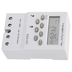 - This time control switch can automatically switch on and switch off various kinds of electric equipment according to fixed time. It is widely applied to programmable control of electric equipment. You can set 16 groups of on and off every day, the time error is less than 1s per day. Features: 1. the time error is less than 1s per day. 2. Long service life: the output is a high-power relay, using silicone button. 3. Enhanced anti-jamming capability. 4. You can set 16 groups of on and off every day, easy and convenient to operate. 5. It has the clock correction / calibration function and also has keyboard lock to avoid the fault operations. Specification: Product Name: Timer Switch Model: KG316T Power supply voltage: AC220V Power consumption: 1W Switching capacity: 25A Timing Control Range: 1min - 168h Timing error: less than 1s Relative humidity: <95% Ambient temperature: -20°C - 70°C Package list: 1 × Timer Switch