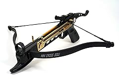 - This 80 lb draw weight crossbow uses an easy and safe-to-use cocking mechanism. Manufactured with a strong plastic body and compressed molded fiberglass bow, this crossbow pistol is very durable and perfect for both small game hunting and target practice. Each crossbow includes 15 aluminum arrows with metal tips and adjustable tactical sight. With a firing speed of 165 fps, the 80 lb cross bow is great for hunting small game. The new self-cocking mechanism much more safe and far less strenuous to use. By simply pulling down on a pivoting arm lever, this crossbow's cable is cocked much more easily, even engaging the safety automatically. The speediness of the new cocking mechanism shortens reload time, allowing you to get off more shots quickly. Like all hunting weapons and gear, proper maintenance is essential in prolonging the life of your crossbow. With each use, elements of the crossbow can begin to wear. This package includes 2 fiberglass bow, 2 80lb string, and 15 aluminum arrows. These extra pieces will allow you more time to enjoy your crossbow without worrying about wear-and-tear or your bow's performance. We also recommend applying rail lube often to your crossbow's rail slide and wax to your string to decrease the friction that can hurt your string. It's also recommended to check the tightness of your crossbow's screws often as vibration can loosen them overtime.