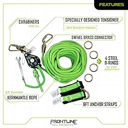 Frontline HLK1004 4-Person 100' Adjustable Horizontal Lifeline System with 6' Anchor Straps | OSHA & ANSI Compliant | Comes in Frontline Bag