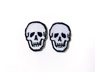 TH Set of 2 Tiny. Mini White Skull Skeleton Logo Sew Iron on Embroidered Applique Badge Sign Patch Clothing Costume