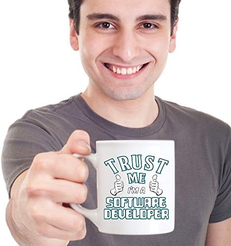 Best Quality and Originality: Buy an awesome Software Developer coffee mug for a family member, a friend, a colleague or yourself! The unique and funny coffee or tea cup is a great way to spread love, joy, happiness and laughter to the special ones in your life. Creative gifts are liked by all and are the best way to uplift your mood. We design and produce our brand exclusively to meet our high standards of quality and originality and satisfy our clients. Product information: All 11 oz ceramic mugs feature printing on both sides that is guaranteed to last for years. Our coffee cups are dishwasher and microwave safe and are great for home and restaurant use. The mugs are made of 100% pure white ceramic and have a large easy grip handle. All of our ceramic mugs are printed in the USA. 100% total and complete satisfaction guaranteed! Unique and funny: One thing that can make your day is a good laugh with an old friend while drinking from a funny coffee mug. Another is a relaxing moment shared with the aroma from a warm cup of coffee or tea with a unique message that will cheer you up and motivate you during the whole day. This unique Software Developer mug is a great idea to make people remember you with every sip they take Classy: By holding a stylish coffee mug in your hand, you make a classy statement in a silent way. Get the unique custom coffee cups with unforgettable title Trust Me I'm A Software Developer, add to your collection and impress people with your amazing style. Memorable gift: Our Unique and Funny coffee mugs are intended for coffee lovers and for all who enjoy a perfect coffee cup. When you buy our personalized coffee mug for someone, they will remember you every morning with a warm smile on their face. Design:C1