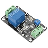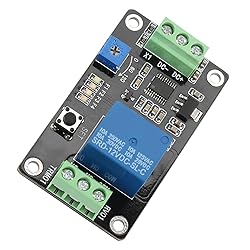 - TRM01 Delay Relay Module could be widely used in a variety of control situations that require delay self-locking Specification: Working voltage: DC 5V, 12V, 24V (Optional) Working current:(<1mA when the relay is not operating) <80mA at 5V ;<35mA at 12V ;<18mA at 24V Load capacity: -normally open port: DC 0-30V/10A, AC 0-250V/10A -normally closed port: DC 0-28V/10A, AC 0-125V/10A Working temperature: -20~60 (limit range -30~70) Size: 60×35×20mm/2.36×1.38×0.79in Package weight: Approx. 23g Module function: The delay time T1 can be adjusted between 0.1 second and 120 seconds Function F1: Power-on delay pull-in: After the delay of T1 from the start of power-on, the relay pulls in and sends a high-level pulse to the X1 interface at any time Function F2: The power-on delay is disconnected: the relay is closed when the power is turned on. After the T1 time is closed, the relay is disconnected, and a high-level pulse is given to the X1 interface at any time Function F3: Self-locking relay mode: a high-level pulse is sent to the relay X1 interface, the relay is closed, and a high-level pulse relay is turned off Function F4: Level mode: When the power is turned on, the relay is disconnected, and a high level is sent to the X1 interface. The relay immediately picks up. After the X1 port disappears, the relay still pulls in. When the pull-in time T1 arrives, the relay turns off Package list: 1×Delay Timer Relay