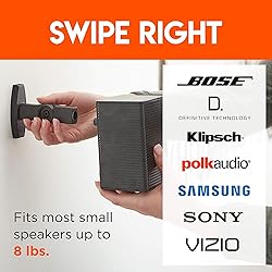 Enhance your musical experience in under 15 minutes by mounting your satellite speakers anywhere on the wall or ceiling! Requires a keyhole or threaded insert mounting hole on the back of your speaker. These mounts are built to tilt and swivel, allowing you to adjust your speaker to create the most perfectly angled sound for your unique setup. Comes with brackets to fit most satellite and bookshelf speakers weighing up to 8 lbs. Included in the box are all the screws you could possibly need, so don’t worry about making that extra trip to the hardware store. This mount pair is ultra-compatible, working with speakers from top brands like Vizio, Sony, Klipsch, & more! Weather-resistant, nylon construction means you can mount these suckers outside. Time for your barbeque to turn up!