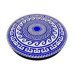 Grab this Ancient Greek Mandala White Grip as a gift for your daughter, son, brother, sister, girlfriend, boyfriend, wife, husband, dad, mom, aunt, uncle, grandma or grandpa who loves Mandala Sacred Geometry Geometric Pattern Zen Phone Accessories This blue Ancient Greek Mandala White Phone Grip is a perfect gift and cellphone present for artists, art lovers, mandala lovers, men, women, adults, kids, teens, youth, girls and boys for Mother's Day, Father's Day, Birthday or Christmas 2019 PopGrip with swappable top; switch out your PopTop for another design or remove it completely for wireless charging capabilities. (Not compatible with Apple MagSafe wireless charger or MagSafe wallet.) Expandable stand to watch videos, take group photos, FaceTime, and Skype handsfree. Advanced adhesive allows you to remove and reposition on most devices and cases. Note: Will not stick to some silicone, waterproof, or highly textured cases. Works best with smooth, hard plastic cases. Will adhere to iPhone 11, but not to the iPhone 11 Pro nor the iPhone 11 ProMax without a suitable case.