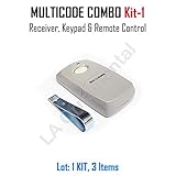 - MULTICODE Combo Kit-1 included: - Linear 109950 receiver: --Multi-Code 1099 12 24-Volt Gate Radio Receiver MultiCode 109950 Linear MCS109950 -Multi-Code 1099 12/24 Volt Single Channel Gate Or Garage Door Opener Radio Receiver With F-Connector Antenna 10 DIP On/Off Type Code -Switch On 300MHz or 310MHz 109950 Now Manufactured by Linear Corporation MSC109950. -Replaces Multi-Code 109930, 109940, 302850, Stanley 109931. Compatible with Multi-Elmac 10 DIP code switch type garage door openers. - MultiCode 308911 Transmitter: --3089 multi-code multicode 308911 OEM Linear MCS308911 300mhz 1 button remote -300 MHz frequency gate or garage door remote transmitter -10 dip switch programming, one (1) button -Compatible with ALL 300 MHz Multicode gate or garage door opener systems -Replaces Multicode model 1089 300MHz 10 Dip Switch Remotes. - TS-DOLKWP Keypad: --Wireless Keypad: 300 MHz (Compatible with Multicode 10-dip switch) -318 MHz 9-dip switch (Compatible with Allstar 9931 and Heddolf P220 -Stainless steel faceplate, Rubber back lit keys -Hard wired or wireless, Holds up to 99 individual 4-digit codes -Operating Voltage: 9-24VDC (battery or powered) -500mA.