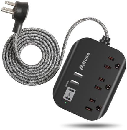 - 【13A 5 FEET UL APPROVED EXTENSION CORD】- Mifaso 3 usb power strip provide a rated power of 1625W (125V~ 13A) and a wide range of power distribution 100~240V, 3 USB charger and 16AWG 5 feet heavy duty extension cord can meet most applications . The braided power cord is not easy to deform, durable and more safety than other power cord.