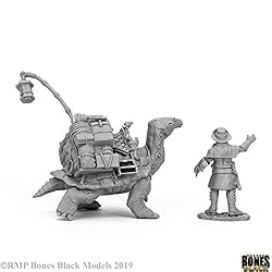 Dreadmere Tortoise and Drayman Miniature 25mm Heroic Scale Bones Black Reaper Miniatures Includes 2 Miniatures- 25mm Heroic Scale Fantasy Miniatures Miniatures are supplied unpainted and assembly may be required. Reaper Bones Black models are tinted dark grey for ease of painting and viewing Integral Bases