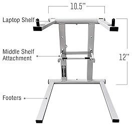 DJ interfaces, accessories, and more Additional shelf for audio interface, or other electronics Multi-purpose stand for laptops, lighting controllers, small mixers, CD Players, Heavy-duty construction machined aircraft grade aluminum