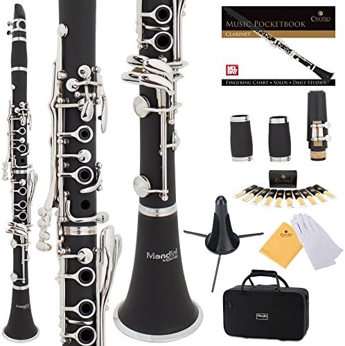 - Complete Set - This b flat clarinet includes clarinet *1, 4C mouthpiece with ligature *1, cap *1, 10 reeds (2.5"), barrel *2, case *1, foldable clarinet stand *1, cork grease, book *1(with helpful practice guides and study references), cleaning cloth *1, gloves. No matter what level, your clarinet is certain to make masterful melodies