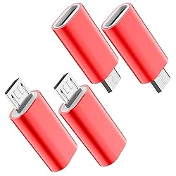 JXMOX USB C to Micro USB Adapter, (4-Pack) Type C Female to Micro USB Male Convert Connector Support Charge Data Sync Compatible with Samsung Galaxy S7/S7 Edge, Nexus 5/6 and Micro USB Devices (Red)