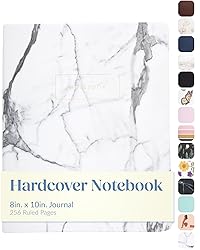 - Discover a large notebook journal designed to balance style, durability, and function. With its abstract hardbound cover, this notebook hardcover blends professional appeal with everyday practicality. Sized at 8x10 inches, it offers the utility of a large notebook while maintaining the portability of a medium notebook, making it the perfect choice for work, school, or home. Inside are 256 ruled ivory pages, creating a dependable lined journal notebook for note-taking, outlining, and planning. The smooth, acid-free pages are crafted from high-quality paper to help minimize ghosting, smearing, and bleed-through when writing with pens, pencils, or markers. Whether used as a writing journal, book journal, or journal book, every entry remains legible and organized. Built for daily use, this lay flat notebook features Smyth-sewn binding, allowing the pages to open fully for uninterrupted writing. Both right- and left-handed writers will appreciate the effortless experience. Two ribbon bookmarks and square corners add structure, while gilded edges provide protection and elegance. As a hardcover journal and hard cover notebook, it is strong enough to withstand travel and constant use. Versatility is at its core. This notebook adapts easily into journaling notebooks, a daily journal, or a business notebook for the office. It functions well as a work notebook for projects, a travel notebook for trips, or a commonplace book for ideas and reflections. Pair it with a dotted journal or grid journal for diagrams and layouts, while this lined edition anchors clean and structured writing. Designed with both practicality and detail, this bound notebook elevates productivity while keeping your notes clear and accessible. More durable than disposable notebooks & writing pads, it provides consistency and focus across 256 pages. Whether you prefer journals for writing, professional notebooks for work, or a simple journal notebook for everyday planning.