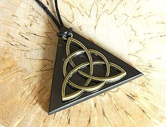 - Shungite Pendant Triangle "Magic node": Shungite Triangle has length of the sides around 40mm and weight 7g. "Magic node" is made of metal (zinc alloy). Color: Antique bronze. Comes with a black waxed thread ( diameter 1mm). SHUNGITE is miracle natural stone that protects the human biofield. Shungite suits everyone both men and women. It makes the place around pure and safe and it also brings calm, good luck and success.