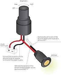 - Smooth dimming at your fingertips. Turn the knob all the way to the left and it will "click" off. Turn the knob clockwise and the brightness gradually increases from 0% to 100%. The best benefit for you: this mini LED dimmer easily mounts to a panel. So all the electronics are hidden away, and you're left with just a tiny knob. How to mount: Just pull the pressure-fitted knob straight off, loosen the washer/nut, and attach to a hole drilled in a panel (diameter of about 10mm, or 3/8"). Wiring is simple: Hook up your 12V or 24V + and LED + to the RED wire, 12V or 24V - to the BLACK wire, and then LEDs - to the WHITE wire. Standby Current Draw: 3mA (when turned down to 0% "Off") Specification Operating Voltage Range: 12-24VDC Current Rating: 4.8A at 12VDC / 2.4A at 24VDC IP Rating: IP67 Max Panel Mounting Thickness: 4.5mm Hole Size for Installation: 10mm