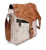 Amp up your vintage style with this gorgeous messenger bag Hand-finished full grain leather material Buckle closure Outside has front and rear zippered pockets Inside has one zip and two slide pockets