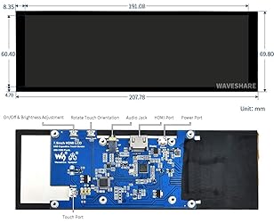 Provide online user manual, please check the manual carefully before using! The display orientation is portrait by default, 400×1280 resolution (H×V). Change the software config for landscape display. 7.9inch IPS screen, 400x1280 resolution, HDMI/USB interfaces. 5-point capacitive touch control, tempered glass panel, hardness up to 6H. Used with Raspberry Pi, supports Raspberry Pi OS / Ubuntu / Kali and Retropie, single touch and driver free. Using as a computer monitor, it supports Windows 11/ 10 / 8.1 / 8 / 7, five-point touch and driver free. HDMI audio input, 3.5mm headphone/speaker jack.