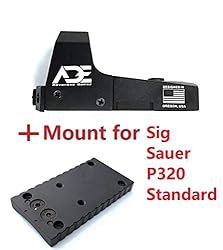 Comes with a Picaitnny mounting plate. Also comes with ADE all new designed adapter plate is to REPLACE the rear sight for Sig Sauer STANDARD P320 Handgun The P320 Plate that comes with this listing Only fits standard P320. It does NOT fit special edition like XCarry, X-5, XCompact and M17 The ADE RD3-006 has been upgraded with several enhancements to improve functionality and user experience. The rear locking screws have been removed and replaced with a self-locking mechanism for easier use and greater reliability. Additionally, the new motion-activated technology puts the green dot illumination into sleep mode after five minutes of inactivity, instantly reactivating it at the previous brightness setting when motion or vibration is detected, ensuring seamless operation and improv Shock/Fog Proof. It is rain resistant, but not waterproof. Lenses are precision ground and Polished to exacting geometries to virtually eliminate Parallax and to provide a very clear, crisp sight picture 3 MOA. 5 Illumination Settings. Powered by a lithium CR2032 battery(Included)