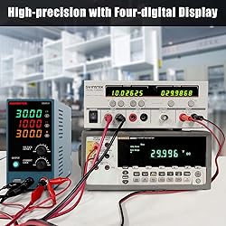 【Auto Power Calculation】 - Intelligently calculates output voltage and current into power and displays the value on its large screen.; decimal point automatic carry & LED 4 digits display of voltage function displays.current and powe; The keyboard can be locked to prevent misoperation. 【Output switch control】 - Sometimes we need to switch between different voltage or current outputs, but we often forget to unplug the previous instrument and cause the instrument to burn out.,which often occurs in the maintenance.Output key is designed to solve this problem.By pressing the Output key, the required voltage and current can be adjusted without the actual output power,Which makes this DC power supply more secure and more energy efficient. 【Safe and Reliable to Use】 - Safety is our priority. The built-in fan low arc noise & low ripple,The power supply is durable and compact. Productive work since the power supply comes multiple protection of Over-voltage, over-current, over-power, over-temperature, short-circuit powerful protection function. 【Wide Application】 - Front 5V 2A USB charging interface that can be charge your devices.Applied in production line test, electrical maintenance, aging products, battery charging, laboratories scientific research and teaching and all other need DC regulated power supply.,Nice gift choice for DIY electronics hobbyist. 【Manufacturer's Package】 - 1 * HM310 Power supply host , 1 * Output power cord , 1* Input power cord , 1 * User manual.High quality material adopted and make it more stable output, small volume, light weight, easy to carry and move and easy operation.