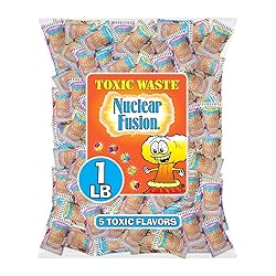 NUCLEAR FUSION CANDY: An electrifying blend of bold fruity flavors with the mouth-puckering extreme sourness you crave! DOUBLE-ACTION SOUR: Sour, then sweet, then sour again. Just when you think the eye-watering sourness is over, TOXIC WASTE Hazardously Sour Candy delivers another round of ultra-sour action! CRAVING A BOLD AND SOUR TREAT? Enjoy Nuclear Fusion Extreme Sour Candy, individually wrapped for easy sharing with friends, a snack break at school, or whenever you're in the mood for a flavor explosion that’ll make your taste buds tingle! KEEPIN' IT SOUR : 5 ULTRA SOUR FUSION FLAVORS including Raspberry-Lemon, Pineapple-Passionfruit, Grape-Strawberry, Banana-Blueberry, and Orange-Apple. Try them all to see which is your favorite. TAKE THE TOXIC CHALLENGE: Since 2001, TOXIC WASTE has been delighting children and adult candy lovers alike with our fun sour creations. Are you ready to put your tastebuds to the ultimate sour test?