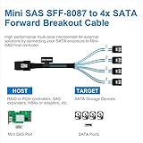 Internal Mini SAS data cable connects a RAID or PCIe controller with an SFF-8087 port to 4 discrete SATA drives; Mini SAS to SATA adapter provides reliable internal connectivity between a Serial attached SCSI controller card in a computer system and direct attached storage devices with a SATA connector Leverage hardware raid performance with this SATA multi-lane cable; Two cables can connect up to 8 SATA drives to span RAID controller arrays and share performance across two PCIe 2.0 x8 lanes with compatible host bus adapters; Supports up to 6Gbs data transfer rate per drive DIY or pro installers both appreciate the convenience of a forward fan-out cable with an internal mSAS connector when expanding storage needs; 3 foot cable harness of SAS to SATA cable provides sufficient length for internal cable management; Slim ribbon cables minimize airflow impact in a computer case Flexible design of SAS breakout cable includes acetate cloth tape over slim ribbon cables for strain relief to protect cables without rigidity; Woven mesh sheath covers half of the cable for easy routing; P1 to P4 markers provide easy ID after installation; Low profile SATA connectors have easy-grip treads with stainless steel latches to prevent accidental disconnection and reduce vibration disconnection