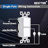 - BESTTEN 2 Pack Double Rocker Light Switch, Two Single Pole Electrical Paddle Switch, 15A 120V, Dual in-Wall, Combination Interrupter, Screwless Wallplate Included, UL Listed, White