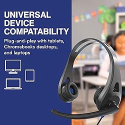 IMMERSIVE SOUND. Designed by ThinkWrite's in-house audio engineer, the TW110 headphones are built for long-lasting, everyday use. Hear and feel the difference with improved sonic quality and a noise-reducing omni directional flip-down microphone boom. MULTI-USE. Deliver crisp recordings with the noise-reducing omni directional mic and experience exceptional sound quality whether you're listening to music, online gaming on a console or PC, distance learning, working in the office, or making ASMR sounds. PREMIUM DESIGN. Protect your ears from compression stress and the strain of damaging frequencies. Featuring ergonomically angled earcups, enjoy hours of use and unparalleled comfort without applying unnecessary pressure to delicate ears. ULTRA DURABLE. Designed to withstand hardwearing use, these headphones feature a strong, flexible ergonomic frame, chew-resistant fabric cable, and an optimized audio curve that supports all-day comfort. TECH SPECS. Microphone: Omni Directional. Plug Type: 3.5mm TRRS jack. Cord Length: 1.3m. Compatible with Apple iPad, Google Chromebook, Kindle Fire, Android Tablet and Laptops. Warranty: 2 year.