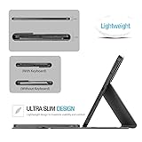 Ultra-slim Wireless Keyboard Case for Samsung Galaxy Tab S8+/S8 Plus 12.4" Tablet 2022 Release (Model:SM-X800 X806)/ Galaxy Tab S7 FE 12.4" Tablet 2021 Release (Model:SM-T730 T733 T736 T738)/ Galaxy Tab S7+/S7 Plus 12.4" Tablet 2020 Release (Model:SM-T970 T975 T976 T978) NOT compatible with any other devices. Please kindly check the model number SM-T*** on the tablet "Settings" before purchase Wireless Keyboard + Stand + Carrying Case, stylish and convenient, perfect for daily use and travel; Precise cutouts allow full access to all features (Cameras, Speaker, Ports and Buttons); Designed with a S pen holder at the tablet holder for storing the S Pen when it’s not in use; Wireless charging feature of the S Pen is also fully supported by the cutout at the back of the case Innovative magnetically detachable wireless keyboard design, easily remove the keyboard any time you want; Three dents on the case for propping up the tablet into three different viewing angles in landscape mode Lightweight and slim 7mm laptop-style keyboard made from quality ABS material, well-spaced keys and spring mechanism underneath offer better tactile response for users, providing a fast and smooth typing experience Premium composition leather exterior protects your tablet from accidental dropping and bumps; Soft anti-slip interior protects your tablet from being scratched