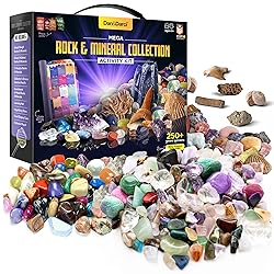 Mega rock, fossil & mineral collection kit: We've done the traveling and sifting through all that dirt for you, and collected this incredible collection of 250+ special minerals, fossil and gems just for you! Jumbo learning mat: We've given you lots of mysteries to solve, and a huge learning mat to use to compare what you find to their pictures and learn fascinating facts. Premium value: Includes select rough rocks and minerals, select polished rocks and minerals, select genuine fossils, an assortment of mixed rocks and minerals, jumbo learning mat, magnifying glass, fossil display case, collector's pouch. A fun and educational gift for all ages: It's not often that a science project can be fun and engaging, but this kit achieves both! Great set for individual play or as a group activity. It fascinates children and adults as soon as they pull it out of the box and is a perfect STEM project for any age. It fosters a love for science, geology, and paleontology in a fun and exciting way.