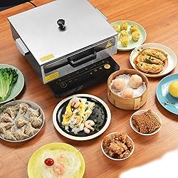 [Multifunctional Rice Roll Steamer]: Can be used for steaming rice noodle roll, rice paste, flour, taro, steamed buns, dumpling and so on, serving you a variety of delicious Hongkong or Cantonese foods in one machine [Easy to Clean]: Whole stainless-steel construction for easy cleaning; openable top lid for easy access to the inside of the case, no hassle to clean any corners, also easy to add and pour water [Food Grade Quality & Safe Protection]: Food grade 304 stainless-steel tray for safety, long lifespan and anti-corrosion, extra tray for replacement; Case with edge rounded design avoids cutting hands; Scald-proof plastic handle on the trays for easy pulling [Easy Operation]:1-layer rice noodle roll steamer machine for home use, can be used on induction cooker or gas stove directly, easy to make restaurant quality at home, giving the family a healthy breakfast and a taste of Cantonese cuisine [Practical Design]: Flat tray bottom for ensuring even and fast heating to avoid half-done cuisine, serving you the taste just right within minutes; Overall Dimension(LxWxH): 14 3/8" x 12" x 4 5/16" (36.5 x 30.5 x 11 cm)