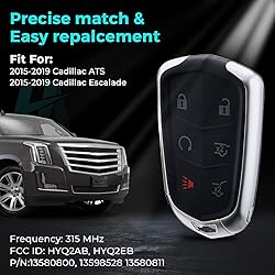- Key fob Compatible with 2015-2019 Cadillac ATS, 2016-2019 ATS-v, 2014-2019 CTS, 2015-2019 XTS, 2017-2020 CT6, 2017-2023 XT5, 2019-2023 XT4, 2015-2017 SRX/Escalade, 2020-2023 XT6. Fits P/N: HYQ2AB HYQ2EB. The perfect replacement option for your old, broken Cadillac key shell. A thoughtful gift for husband, dad, friend, client. All buttons function are the same as the original Cadillac ATS CTS SRX XTS CT6 XT5 Escalade key. Each HelloAuto key has passed strict quality inspection. Please check the adaptation information before purchasing.
