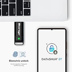 Lock and unlock from the datAshur BT Personal app on your mobile device using a 7-15-character password or simply use biometric unlock (Face ID/Facial recognition, Touch ID/Fingerprint and IRIS scanning) Data at rest encryption with secure Bluetooth user authentication via any smart phone/tablet (iOS/Android). Bluetooth channel is secured by a FIPS validated encryption layer and is used for connection purposes only All data stored on the drive is encrypted in real-time using military grade AES-XTS 256-bit hardware encryption (FIPS 140-2 Level 3 compliant design and technology) to ensure compliance with stringent regulations and directives, such as GDPR, HIPAA, SOX, CCPA and more. OS & Host independent – works with any OS platform and across any host and embedded systems (computers, medical devices, TVs, drones, printers, scanners, etc.) Remote management ready via the iStorage Remote Management Console (optional). datAshur BT drives can be provisioned and deployed as Managed drives within minutes* (not included, additional purchase required)