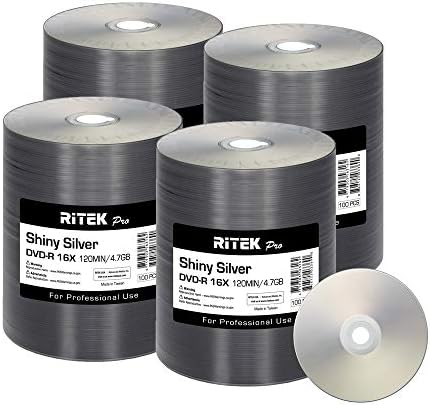 400 Pack Ritek Pro (Professional Grade) DVD-R 16X 4.7GB AZO Dye (MID MXL RG04) Shiny Silver Lacquer Silk Screen Printable Blank Media Recordable Disc