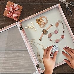 Memory Box - Protect and share your most precious moments and memorabilia. You can arrange a personalized collage with photos, cards, military memorabilia, pet memorabilia, concert tickets, medals, bouquets, etc. Hinged Door - The front display door makes it easy to place or exchange items inside. The retro horn lock makes the shadow box lockable and more secure, and prevents the items inside from falling out. Decorative Frame - The wooden vintage look complements any decoration, and it has two hooks on the back for easy wall mounting. High-Quality Materials – The shadow box inside dimension is 10'' x 13.1'' x 1.82'' (depth) and the outside is 11” x 14”, comes with a solid, durable wood frame, woven fabric interior with 8 stick pins, hasp horn lock door with a transparent shatterproof glass window, and two metal sawtooth hanging hooks on its back. Rest Assured Purchase - If at any time our product does not meet your expectations, simply contact us to solve the problem.