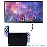 DOCKABLE - ONLY compatible with Nintendo Switch, NOT fit Nintendo Switch OLED or Nintendo Switch Lite. Fit in the dock perfectly without taking off the case DETACHABLE - The joy-cons eject buttons are accessible, you can easily detach the Switch dockable case to get the joy-cons without removing the whole case STURDY ENOUGH - Made with shock-absorbent and anti-scratch PC material. The Protective Case for Nintendo Switch gives full protection for the main console, joy-cons and screen, perfectly protects your device from everyday bumps, drops, falls, scratches, dust, and fingerprints PERFECT MATCH: It's easy to get on and off. Designed with specially placed cut-outs, supports access to all parts of the switch and allows for access to all buttons. The Switch protective case with screen protector will not interfere with the docking system, also compatiable with original kickstand GUARANTEED QUALITY: 1x dockable case for Nintendo Switch, 1x screen protector, 10x thumb grips. Every Switch case is tested for quality. If the switch dockable cover case is not what you expected - Contact us and we will make it right