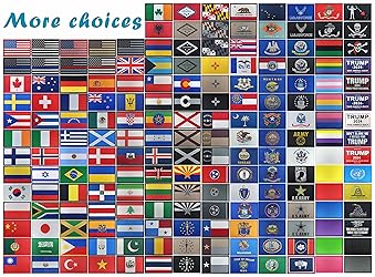 - SPECIFICATION Flag size: 3.15 x 1.97 inch/8 x 5 cm, the right size allows it to be sewn into any garment. Package includes: Set of 2 flag patches with hook and loop fastener backing per pack. EASY, VIVID and ELEGANT TEXTURE Our patch features hook and loop Fasteners backings that can be sewn to any hats, backpacks and uniform and easy to remove, wash or replace other types. UV fade resistance emblem makes the color lasting as new as intact. Soft texture allows it to bend freely without deformation. OUTDOORS and TACTICAL GEAR Perfect decorations for military uniform, tactical bag, jacket, team, backpacks, hats, etc. It's a great way to decorate your garment and add a simple patriotic touch to your belongings. Your are sure to find the perfect flag patches for your outdoors, sports, parade or military tactics. PREMIUM MATERIAL Tactical patches are made from premium industrial strength polyester and the patches made by high-precision embroidery machines are bright in color and clear in texture. Laser cutting makes loop side the same size as tactical patch.