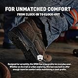- COMFORT THAT WORKS OVERTIME: Whether you're putting in long days in the machine shop, on a road crew or on the tarmac, sore feet make it harder to concentrate on the task at hand. The Caliper is designed for jobsite comfort and safety. The full-grain leather upper is strong and durable, but soft enough to wear right out of the box. The boot is constructed with four layers of cushioning underfoot to give you maximum comfort from clock-in to clock-out, and a slip- and oil-resistant Caliper outsole to keep you on your feet while you work.