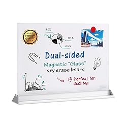 Organize & Prioritize - Keep your notes and reminders close by with our free standing dry erase board! List your daily tasks in order of importance to never forget an important due date! Premium Glass Surface - Uses the same safe tempered glass as our wall mounted glass boards! Easily erases and resists staining or ghosting. Double Sided - Write notes on one side and use the other side as a message board to leave notes for your colleagues. Can also be used as a privacy divider if sharing work stations! Magnetic - Neodymium magnets easily attach and hold up important documents, notes, or other messages! Measures - 18" H x 24" L x 4.75 W"