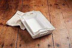 - Nested set of two glazed stoneware baking dishes with dimensional side handles feature ribbed textured exteriors.