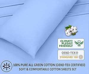 Product Information : Our Bed Sheets are Crafted From 100% Cotton Percale Weave Fabric in OEKO TEX Certified Factory. Better and fine cotton selection add to the reliability and confidence in Product. Softness & Breathability : We have used Premium Cotton to Ensure an Extra Soft, Better Air Circulation, Breathable, and Natural Cooling Cotton Sheet Set For Your Better Comfort and Restful Night Sleep and Refreshing Morning. Durability & Easy Care : Our 100 Percent Cotton Sheets are made from One-On-One Percale Weave Fabric Which Enhances the Strength of the Fabric. Our Sheets are Machine Washable and Require Low maintenance. Size & Dimensions : Our Queen Sheet Set includes (1 Flat Sheet 90 X 102 With A 4 Inch Hem - 1 Fitted Sheet 60 X 80 With 16 Inches Deep Box - 2 Pillow Cases 20 X 30 Inches With 4 Inches Hem). Quality Is Our Culture : Your Satisfaction is the Key to Our Business and We are Confident in the Quality of Our Sheets. If for any Reason You Think this is not Suited For You, Please Follow the Return Policy.