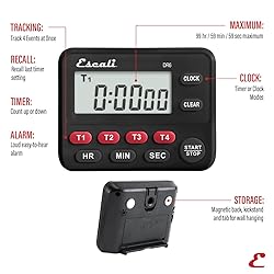 - The Escali DR6 Four Event Digital Timer helps you track up to four separate events at once. Each timer channel can count up or down to a maximum of 19 hours, 59 minutes and 59 seconds. The timer features an overtime counter to keep track of how long a timer has been expired and a recall feature to quickly reset the previous timer setting for repetitive tasks.