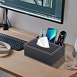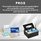 Multifunction PU Leather Tissue Box Cover Rectangular Upgrade Large Size Stationery Napkin Remote Control Holder Storage Box,Facial Tissue Dispenser Desk Organizer Caddy Home Office Supplies (Black)