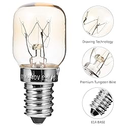 Heat-Resistant Performance: This E14 oven light heat-resistant bulb is engineered to withstand temperatures up to 572F (300C), ensuring reliable illumination during intense cooking processes in ovens and microwaves Versatile Appliance Compatibility: Suitable for use in various kitchen appliances including microwaves, ovens, smoke lamps, and holding cabinets, this microwave oven light bulb set offers flexible application for your household needs Clear Glass Construction: Made from quality clear glass, this baking bulb is designed to endure high-temperature environments while maintaining consistent light output without flickering or dimming Easy Replacement Solution: This microwave oven light bulb set is an ideal replacement for old or broken bulbs in your oven or microwave, restoring proper lighting and enhancing visibility during cooking Practical Idea: This set of heat-resistant oven lamp bulbs serves as a useful accessory for cooking enthusiasts and makes a thoughtful for friends and family who appreciate functional kitchen upgrades